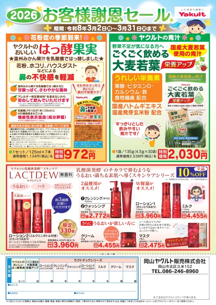 ※本キャンペーンの内容は岡山ヤクルト販売エリア限定となりますので、ご注意下さい。